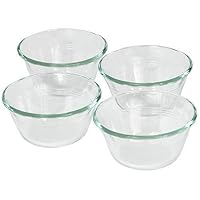 Pyrex Prepware Set of 4 6-ounce dessert dish, set of 4 includes 4 6-ounce dessert dishes. Whether you are preparing a multi-course meal or simply a snack for one, Pyrex offers products which make food preparation a little easier, from beginning to end.There's no substitute for Pyrex, the original glass bakeware. Introduced 90 years ago and made of a durable, high temperature material, Pyrex remains the ideal medium for safe, dependable food preparation.