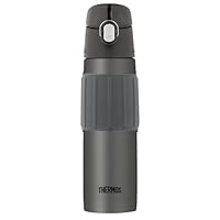 Designed to keep drinks refreshingly cold for up to 12 hours, the Thermos 18-ounce stainless-steel hydration bottle is made with Thermax double-wall vacuum insulation for maximum temperature retention. It's bpa free, making it a safer, more earth-friendly alternative. Made with an unbreakable stainless-steel interior and exterior, the Thermos has a sweat-proof design with a comfortable silicone grip, so it won't be slippery or leave water rings. A push-button sipper lid has a locking ring to prevent spills, so taking it on the go will be mess free. Ideal for water, iced tea, juices, or sports drinks, the Thermos has an 18-ounce/500ml capacity. It fits most standard car cup holders.