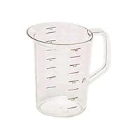 The Rubbermaid Commercial Products FG321800CLR 4-Quart. Bouncer Measuring Cup is made of Clear, break-resistant polycarbonate. It features a Temperature Range: -40 F to 212 F For use with hot or cold foods and is designed to withstand commercial kitchen usage. The Durable measurement markings come in Red for Cup Increments and Blue for Metric Markings. The markings withstands commercial dishwashers and support needed accuracy for all recipe measurements. The measuring cup is Certified to NSF Standard 2.