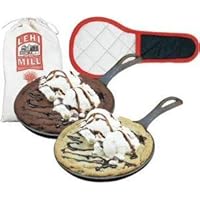 A fun addition to any cabin or home kitchen collection or to take along when camping, this cookie-making skillet set offers a great opportunity for the family to gather--with delicious results. It includes two cast-iron skillets, two hot pads, and one package of Lehi Roller Mills chocolate-chip cookie mix. Simply prepare the cookie mix as directed, place half the dough in each skillet, pressing down evenly all the way to the edges, and place in a hot oven for about 12 minutes at 350 degrees F. When finished cooking, let the over-sized cookies cool for about five minutes before adding a scoop of ice cream in the middle and drizzling with chocolate syrup. The high-quality cast-iron skillets come pre-seasoned with natural oils, which create a beautiful black "patina" finish and help ensure a nonstick surface for effortless food release and quick cleanup. The skillets can also be used to make brownies, sweet rolls, individual pizzas, fajitas, and more. Each form-fitting hot pad slips easily over the cast-iron skillet's long handle and round-shaped base for safe transport to and from the oven, plus the skillet's handle comes with a hole in the end for convenient hanging when not in use. The skillets each measure approximately 7 by 10-1/2 by 1 inches.