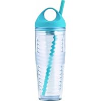 Keep yourself hydrated in style with the Aladdin Migo Aero insulated water tumbler in blue, which comes with a convenient drink-thru straw. It's ridged, no-sweat exterior won't slip out of your grasp, and its double-wall insulation helps keep your beverage cool. Convenient for commuting, the tightly fitting lid attaches easily to bags. It also fits perfectly in your car's cup holder, and the non-slip base adds an extra feeling of security. Dishwasher safe for easy cleaning.
