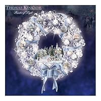 First-Ever Thomas Kinkade Illuminated Christmas Wreath Crafted in Sparkling Crystalline with Kinkade-inspired Centerpiece! - Every season is special, but winter's quiet beauty and jeweled landscapes are the most enchanting. Now, a first-ever collectible Thomas Kinkade crystalline illuminated Christmas wreath to capture the lifelike look of natural, hand-carved ice features seven of the Painter of Light(TM)'s most beloved winter classics on exquisite blown-glass ornaments.Enjoy icy jewels of the season with this stunning illuminated Christmas wreath, exclusively from The Bradford Editions. This handcrafted crystalline "ice sculpture" encircles a cozy Thomas Kinkade holiday village with two quaint buildings and friendly townsfolk. A blue satiny ribbon with hand-tied bow and 16 LED lights make the perfect finishing touches. This limited-edition Thomas Kinkade Christmas decoration is expected to generate strong demand. Don't miss out - order now!